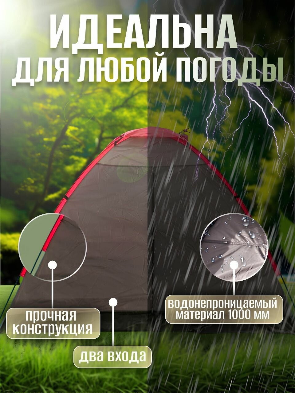 Отзывы на Палатка туристическая 3 местная Classmark для туризма и отдыха на природе, для похода и кемпинга, с москитной сеткой, водонепроницаемая, серый и красный