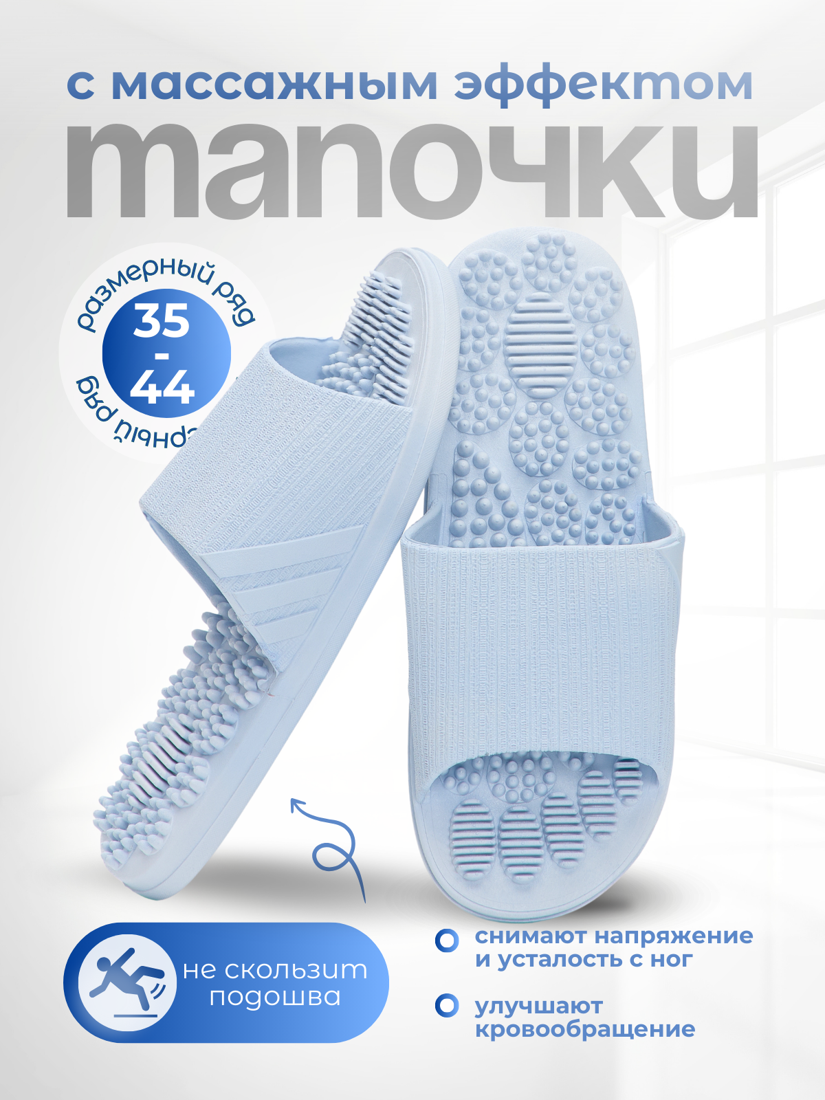 10 цен на Массажные тапочки акупунктурные Карта Стопы, шиацу, светло-голубые, 38-39