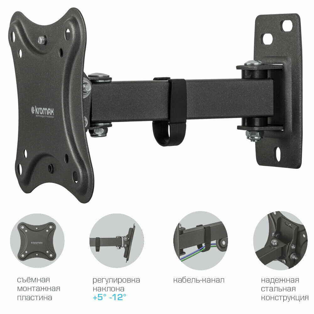 Кронштейн для телевизора на стену / крепление наклонно-поворотное KROMAX CORBEL-2 / до 34 дюймов / vesa 100x100 990 ₽