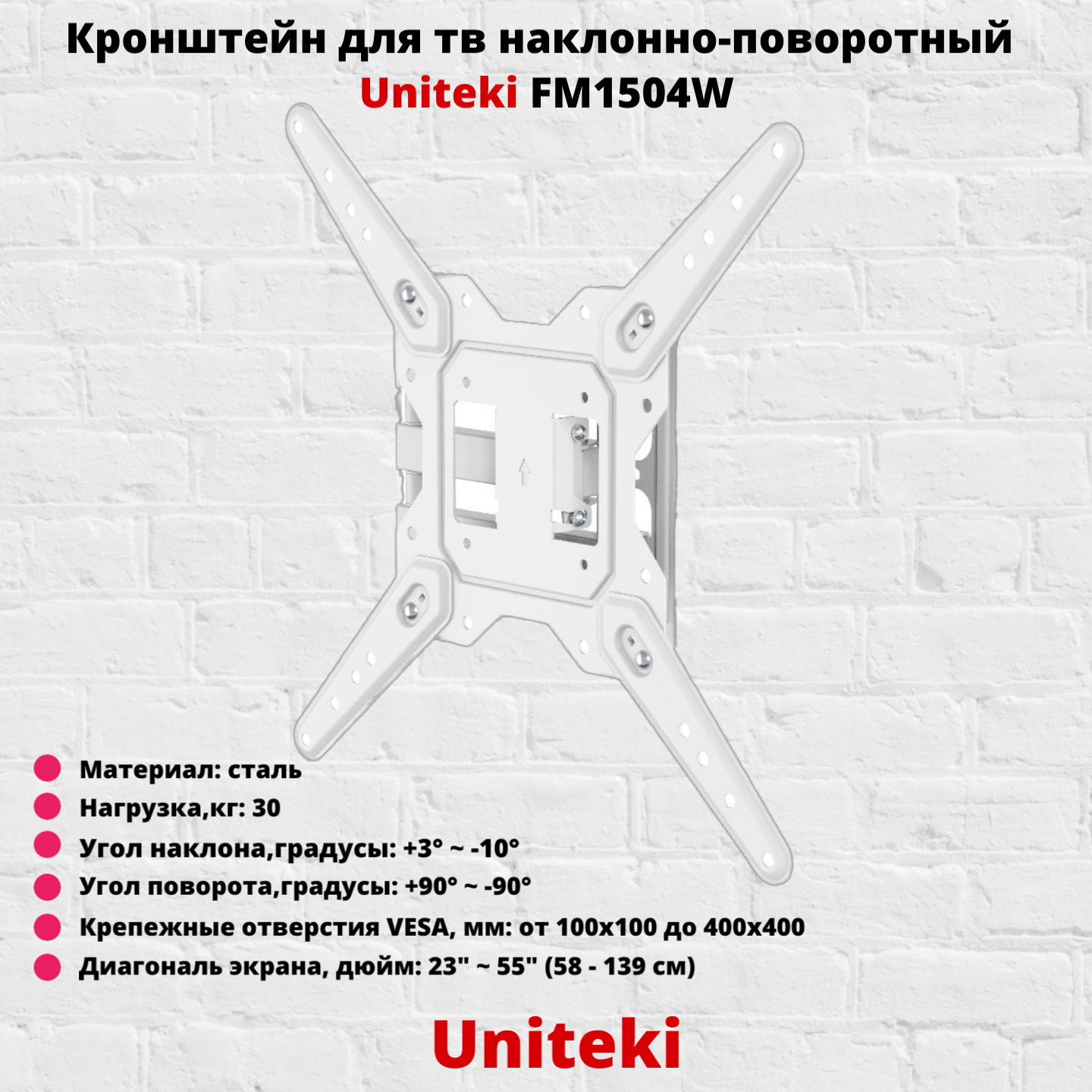 Кронштейн для телевизора на стену наклонно-поворотный с диагональю от 23"до 55" UniTeki FM1504B, черный