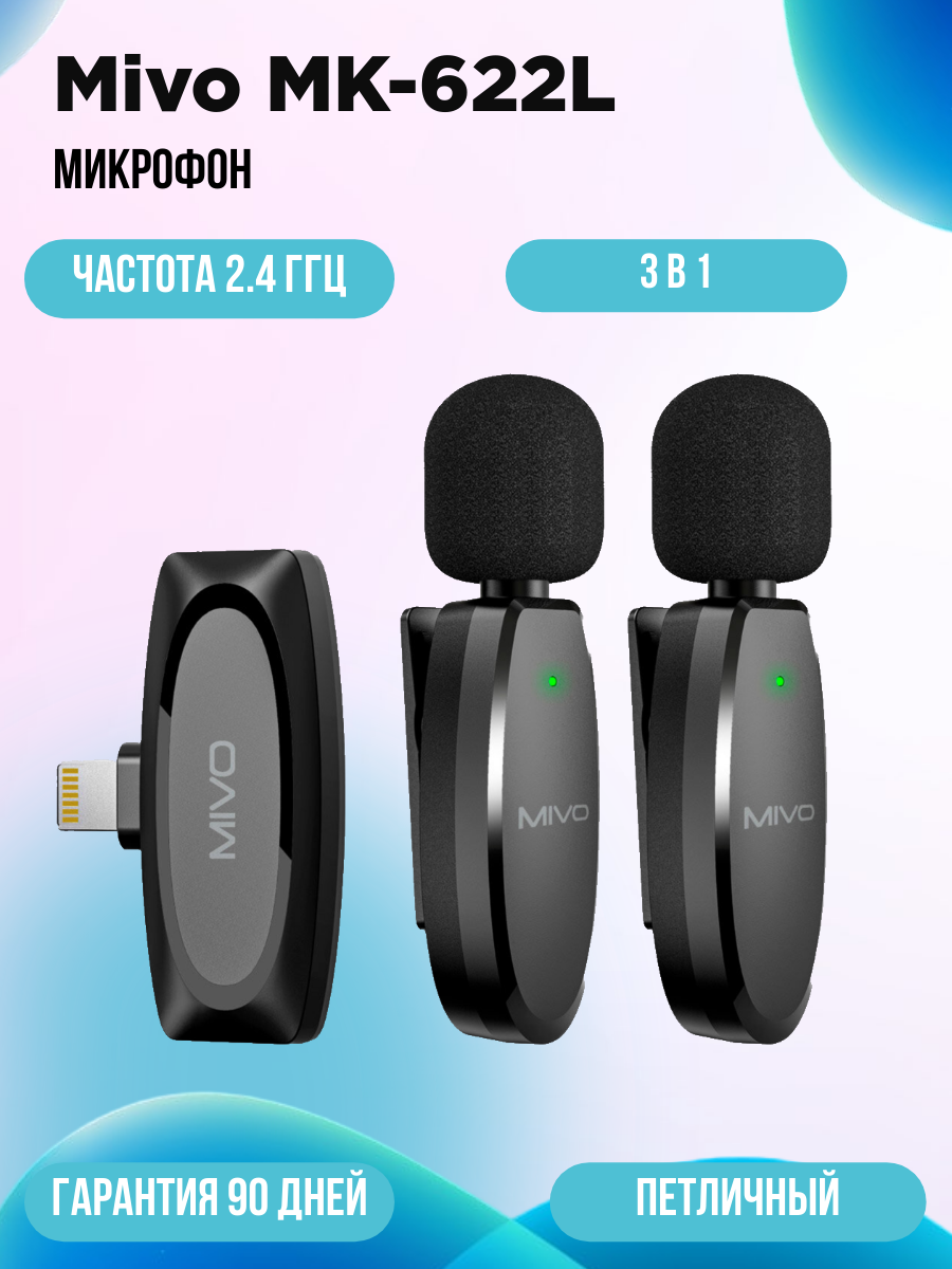 Беспроводной микрофон петличный Mivo MK-620L, 2в1, Lightning, черный 3 580 ₽