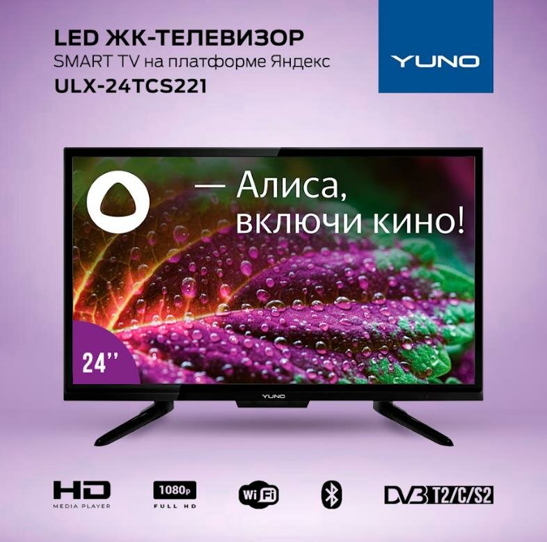 24 Телевизор YUNO ULX-24TCS221, HD, черный, смарт ТВ, YaOS информация: