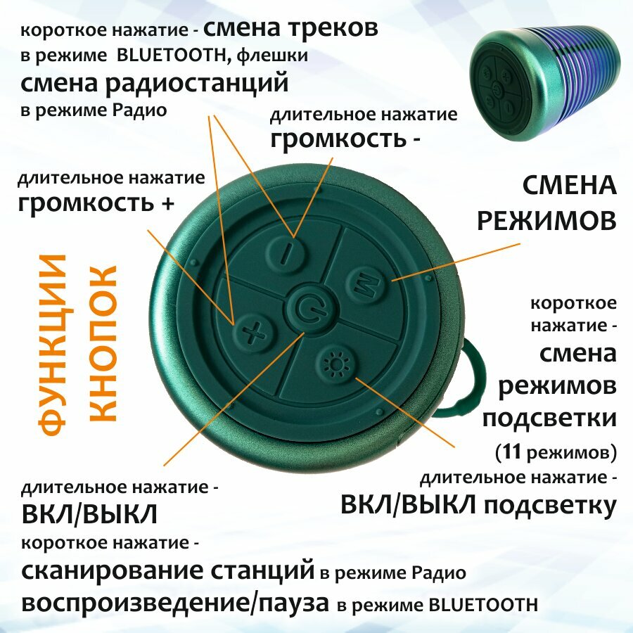 Колонка портативная блютуз беспроводная музыкальная bluetooth зеленая информация: