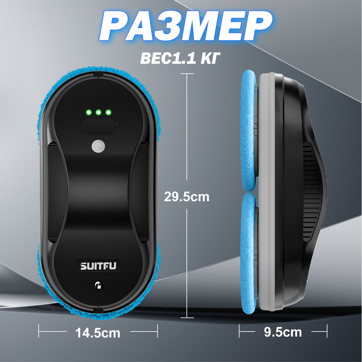 Робот-мойщик окон Suitfu HCR-07 робот для мойки окон, черный+синий Электрические стеклоочистители информация: