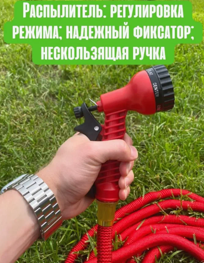 Отзывы на Шланг садовый красный растягивающийся 25 метров для полива с распылителем, с металлическим соединениям\Красный
