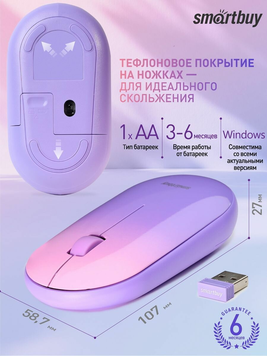 Мышь компьютерная Smartbuy 266AG беспровод фиолет градиент (SBM-266AG-V)/40 информация: