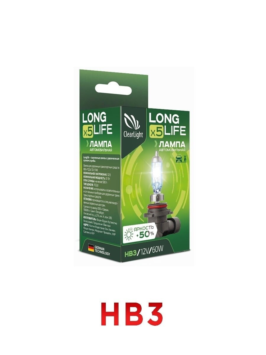 Галогенная автомобильная лампа HB3 LongLife информация: