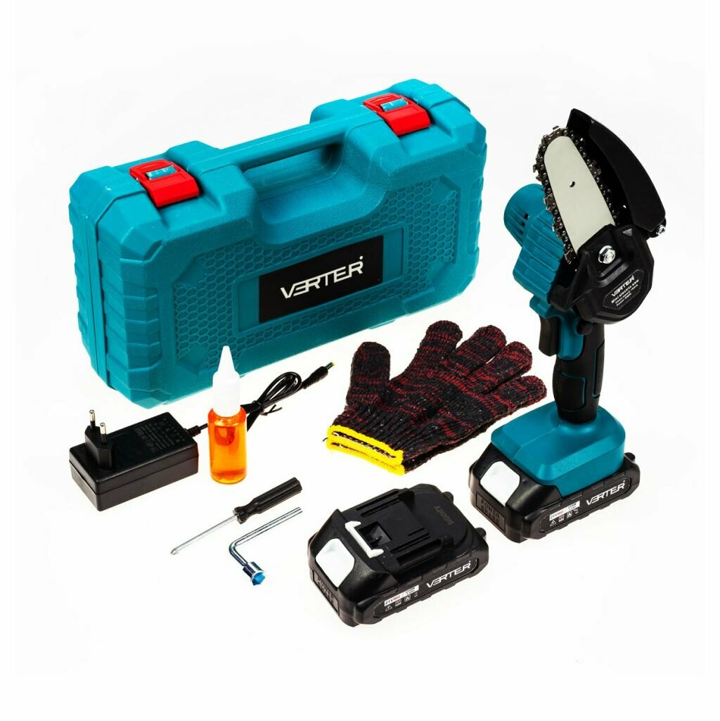 10 цен на Мини-пила аккумуляторная Verter, электропила цепная, в кейсе 21 В, 3500 об/мин, 2 АКБ Li-ion