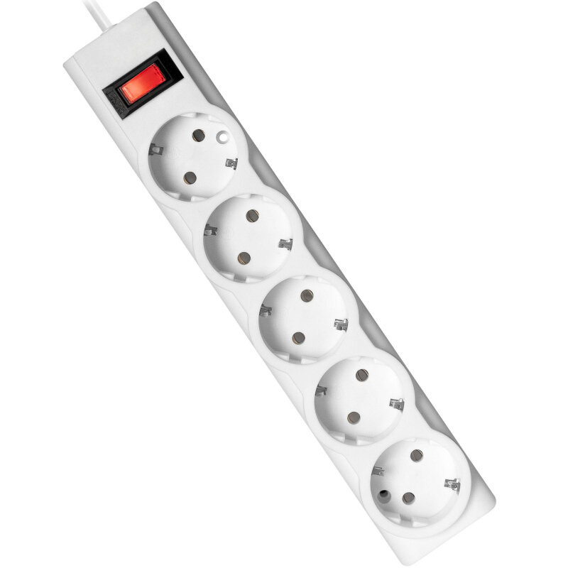 Сетевой фильтр-удлинитель Defender 5 розеток с заземлением , 1.8 метра , выключатель , белый