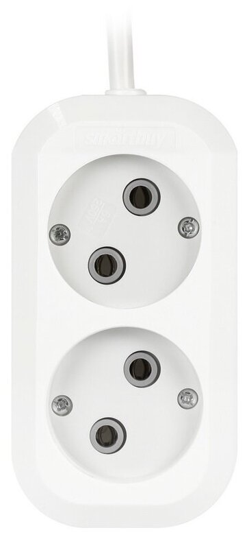 Удлинитель Smartbuy, 2 розетки, 2 м, 10 А, 2200 Вт, ПВС 2х1 мм2, без з/к, белый
