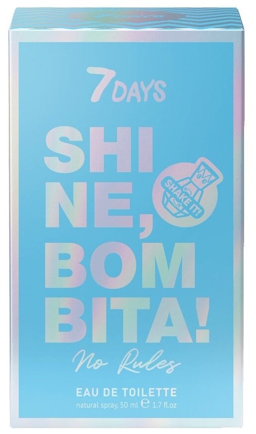 Духи сладкие легкие цитрусовые с шиммером 50 ml 7DAYS SHINE, BOMBITA! Женские с блестками цветочно - цитрусовые NO RULES информация: