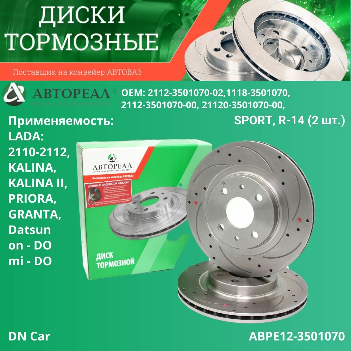 2 шт. Диск переднего тормоза R-14 Евро с тех. выточкой (Автореал ABE12-3501070) для LADA 2110-2112/Priora/Granta/Kalina, Datsun
