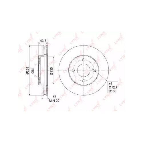 BN1109 LYNXAUTO Диск тормозной передний (238x22) NISSAN Micra(K12/K13) 1.2-1.5D 03> / Note(E11) 1.4-1.5D 05-12 / Tii