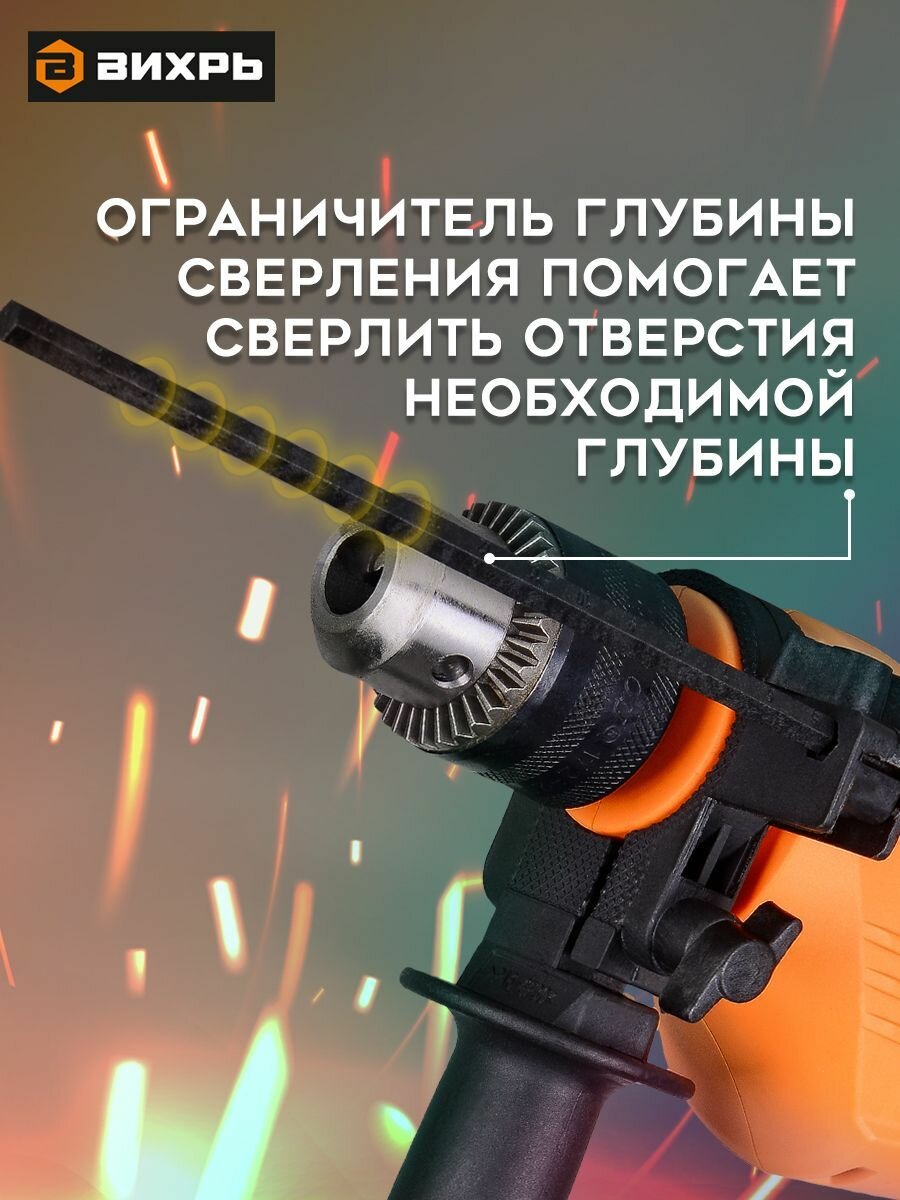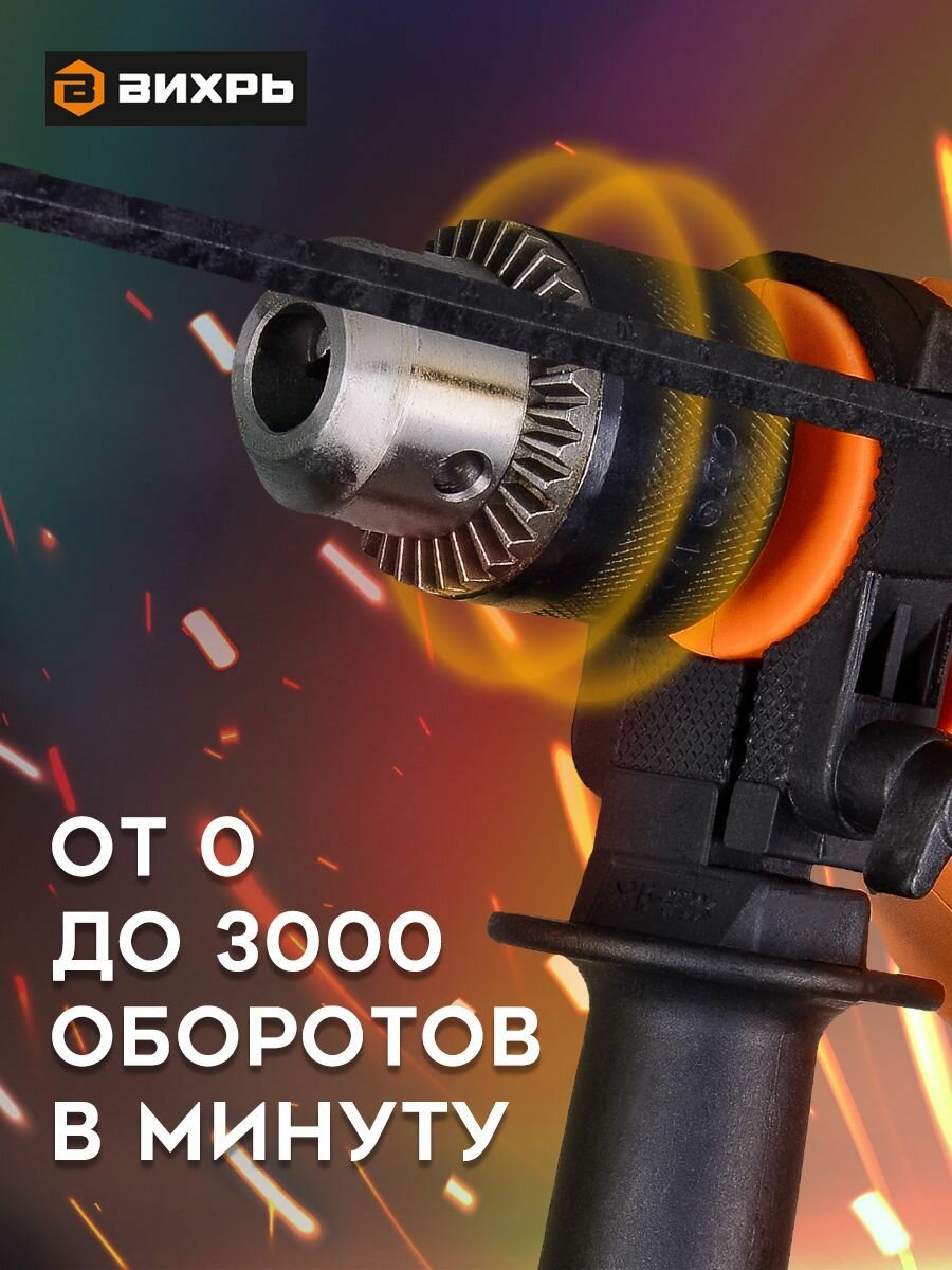Дрель ударная "Вихрь" ДУ-700, 700 Вт, ЗВП 1.5-13 мм, 3000 об/мин, реверс + сверла Вихрь 5193869 4 210 ₽
