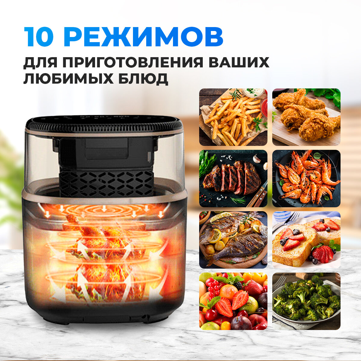 10 цен на Аэрогриль электрический умный / аэрофритюрница LEACCO AF017, черный