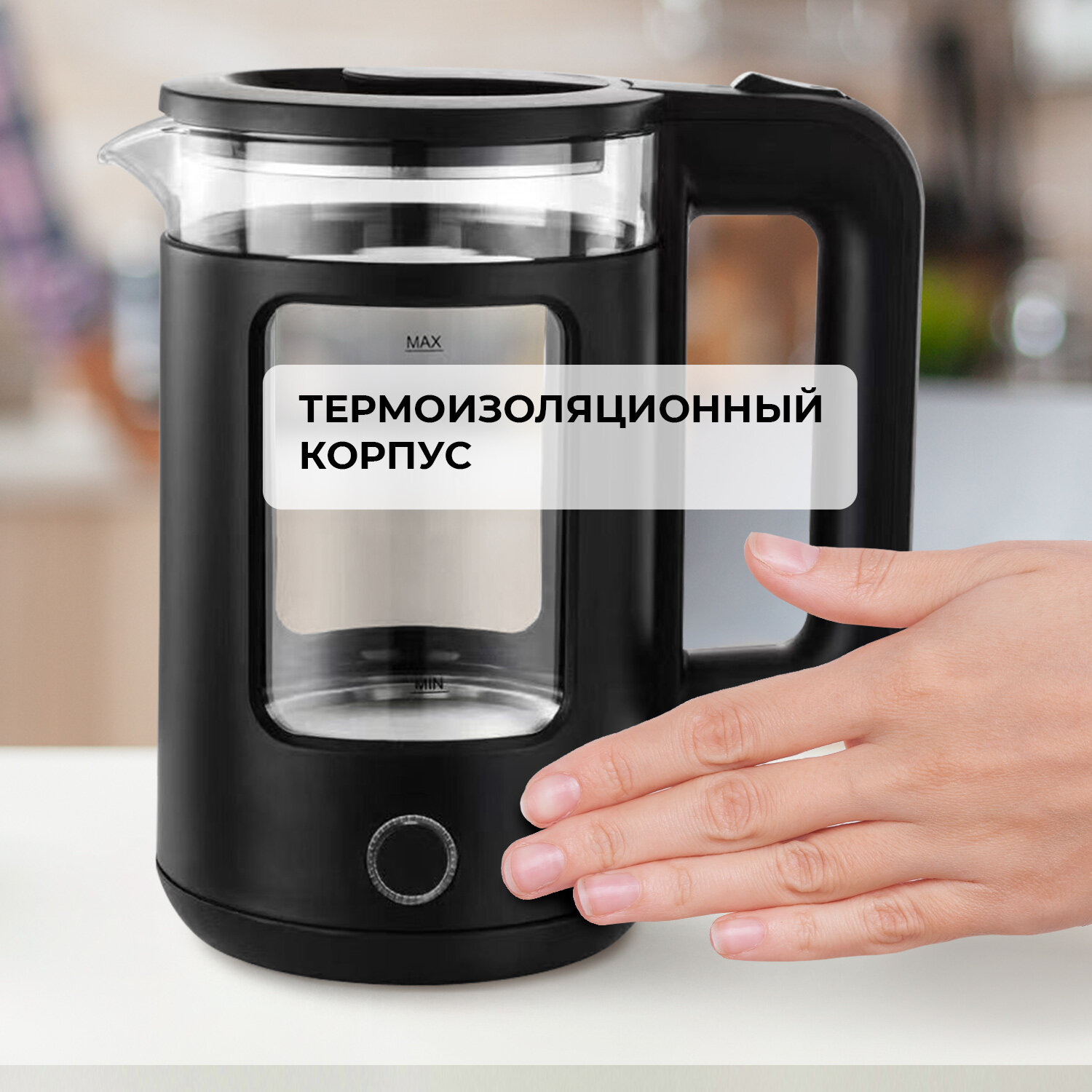 10 цен на Чайник электрический (электронный) стеклянный с подсветкой Hott HT-EKGD04 черный. Электрочайник с подставкой пластиковый с прозрачными вставками из стекла и корпусом из нержавеющей стали