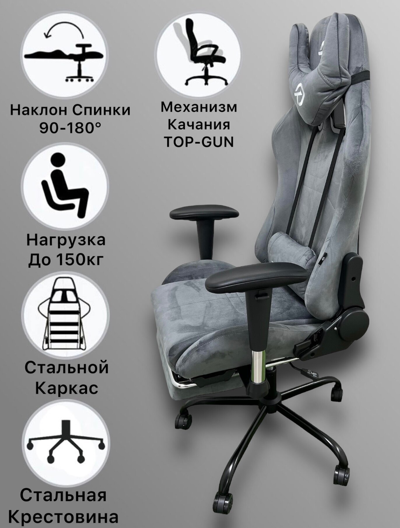 Игровое Компьютерное Кресло, Серый, Велюр, с подставкой для ног информация: