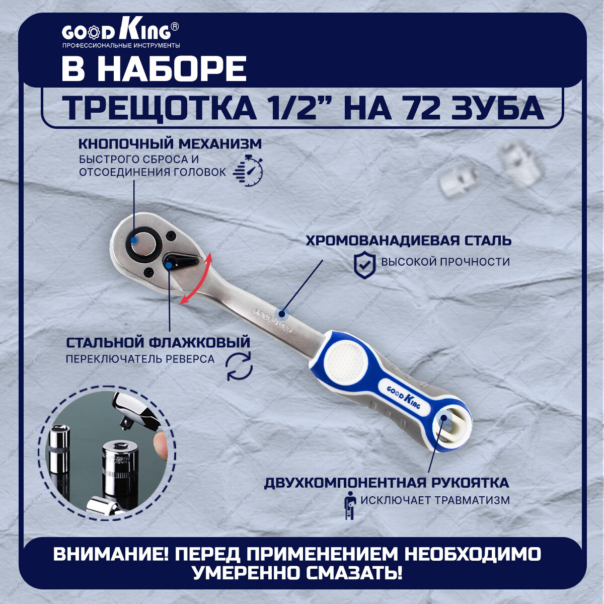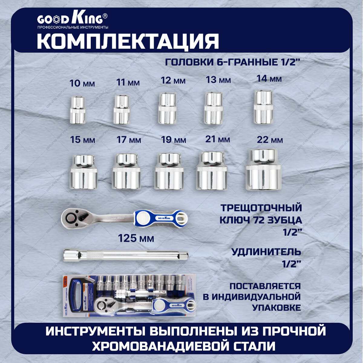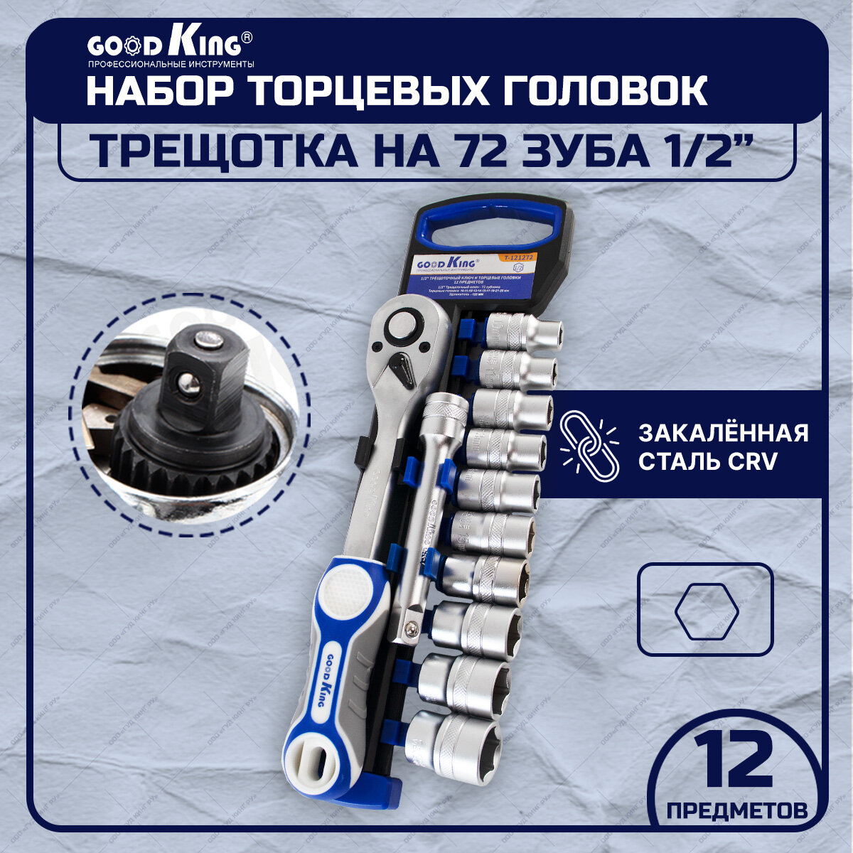 Трещотка 1/2 GOODKING с торцевыми головками 12 предметов информация: