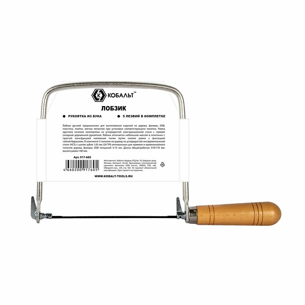 Лобзик ручной кобальт пилка 170 мм, размер лобзика 180 х 310 мм, рукоятка из бука, 5 лезвий в комплекте информация: