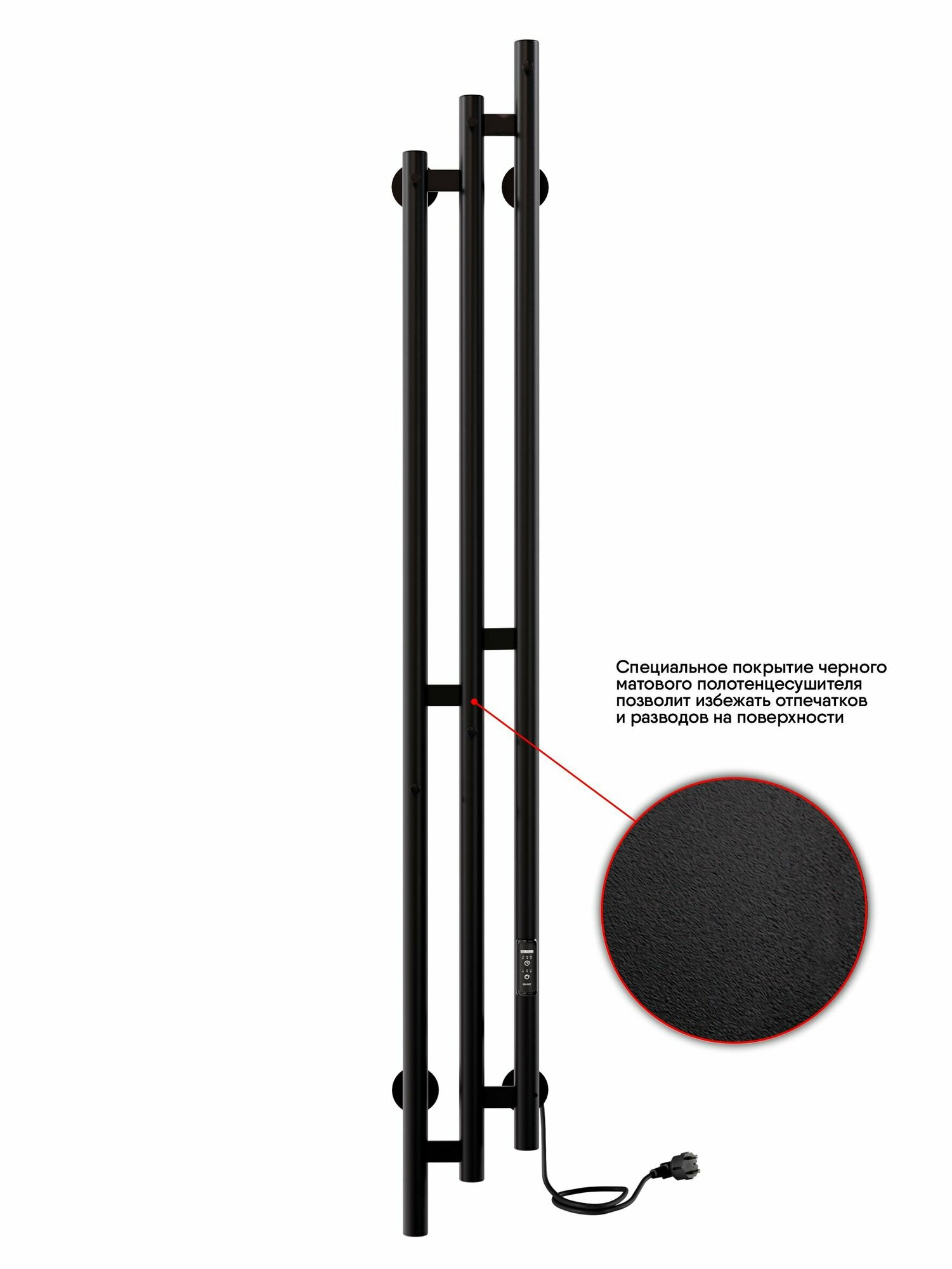 Полотенцесушитель вертикальный GROIS Orso GR-134 1200 черный матовый, диммер справа