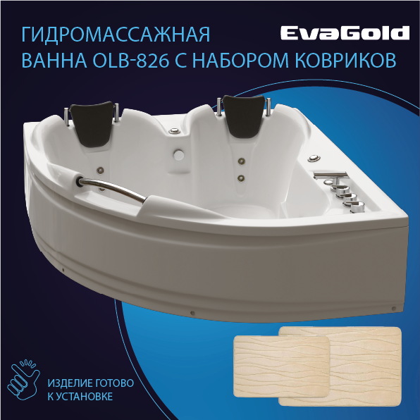 Гидромассажная ванна EvaGold OLB-826 150*150*60 с двумя ковриками для ванной, бежевый информация: