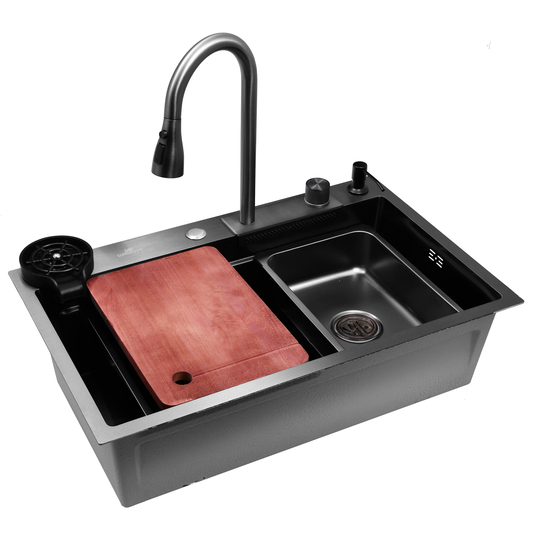 Многофункциональная мойка для кухни с водопадом и душем 75*45 с PVD покрытием Wisent WG37545B-S 22 582 ₽