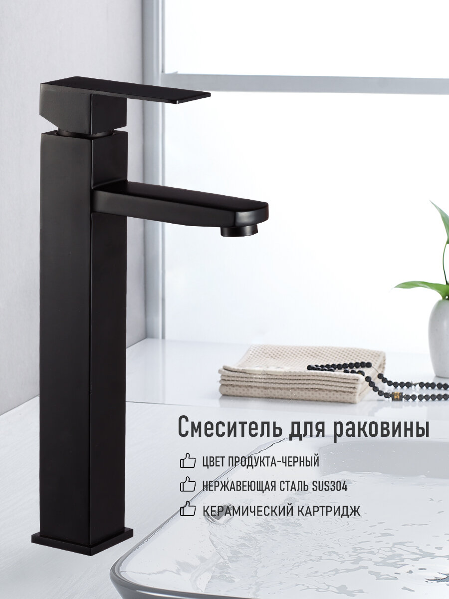 10 цен на Смеситель для раковины кран для ванной высокий для умывальника Frap Y10170-1 чёрный
