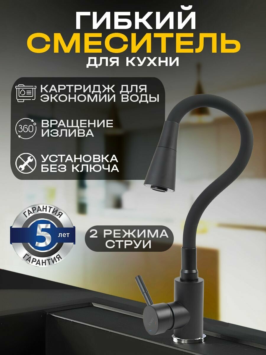 Смеситель для кухни с гибким изливом и двухрежимной насадкой Savol S-3002LM01 3 442 ₽