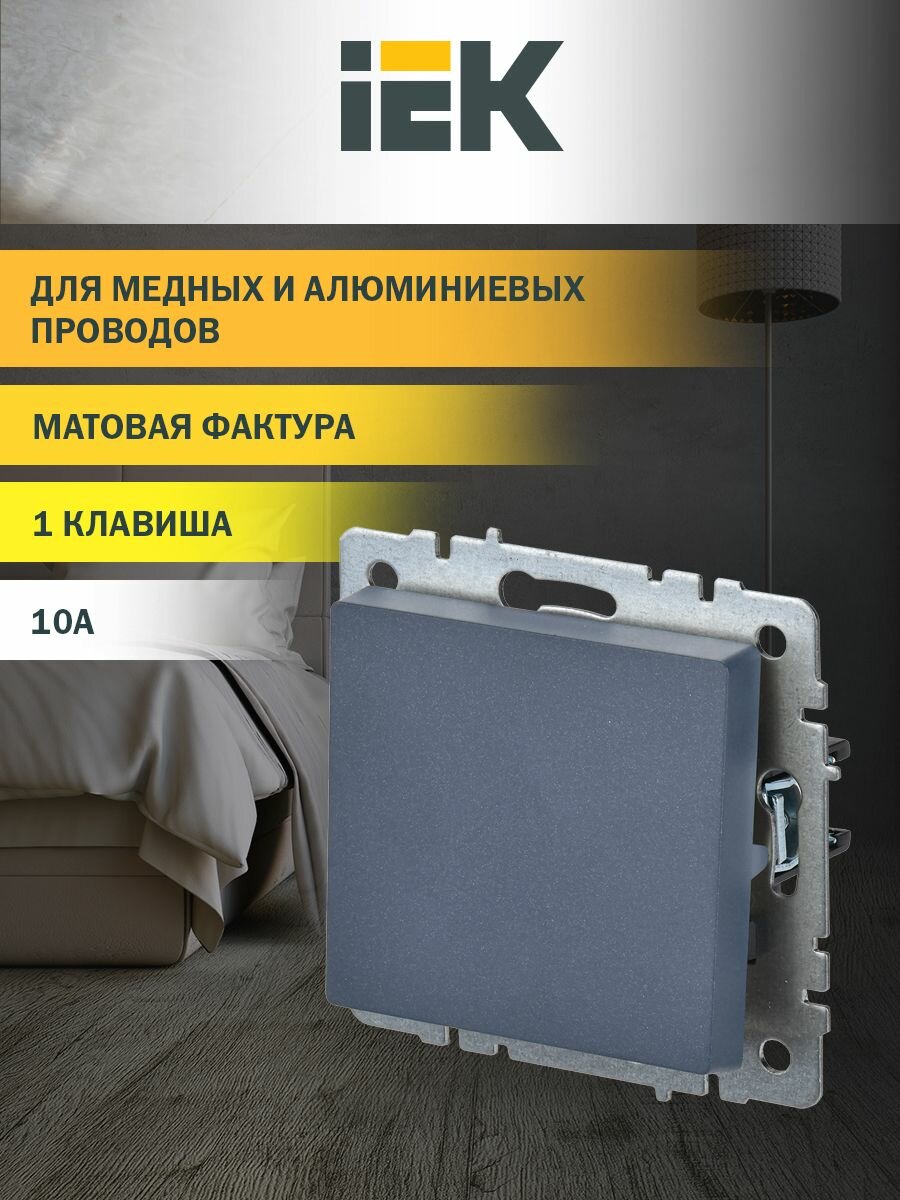 2шт. - BRITE Выключатель одноклавишный 10А ВС10-1-0-БрА алюминий / IEK; арт. BR-V10-0-10-K47; оригинал / - комплект 2шт 467 ₽