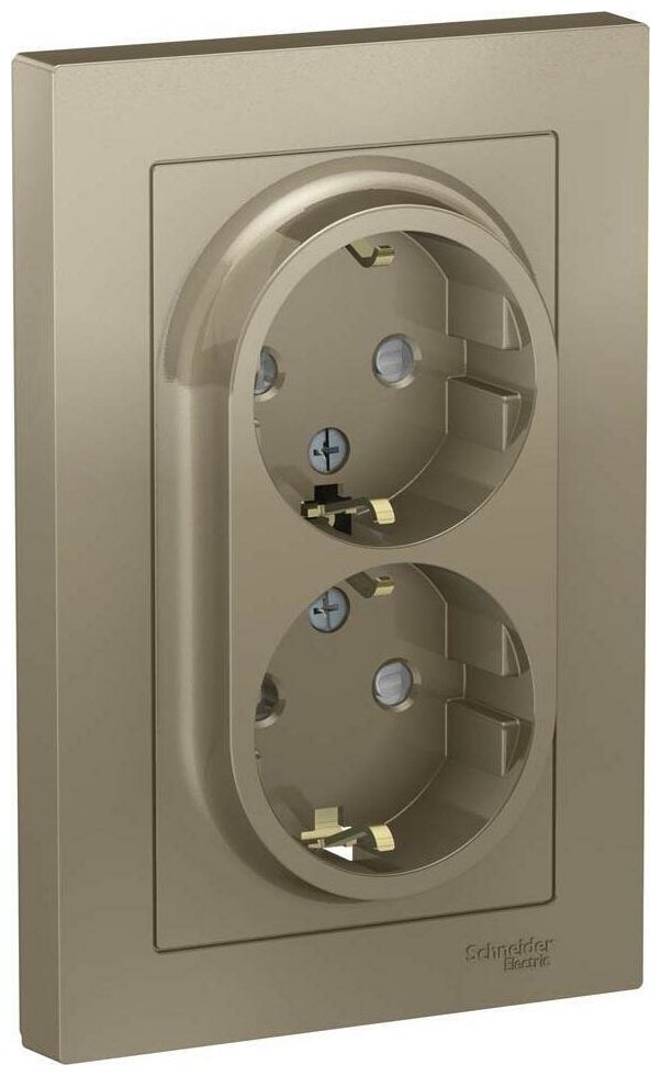 Розетка Schneider Electric AtlasDesign двойная с заземлением с защитными шторками шампань (комплект из 2 шт) информация: