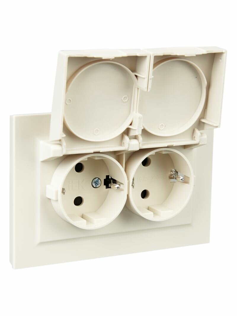 Розетка двойная с заземлением с защитными шторками и крышкой 16А, IEK BR-R26-16-44-K36-F (1 шт.) 423 ₽