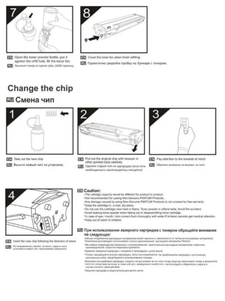 Отзывы на Заправочный комплект Комплект для заправки Pantum Refueling set PC-211PRB P2200/P2207/P2500/P2500W/P2507/М6500/M6500N/М6500W /M6550/М6550NW/M6600N/ (chip+ toner 1600стр)