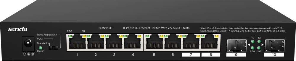 Отзывы на Tenda TEM2010F Коммутатор неуправляемый, 10 портов, 10x1 Гбит/с, RJ-45 8х2,5 Гбит/с, SFP 2х2,5 Гбит/с, настольный, метал
