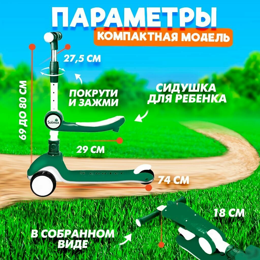 Детский трехколесный самокат-кикборд 2 в 1, беговел городской, для девочек и мальчиков, сиденье выдерживает до 20кг, многофункциональный, с подсветкой и музыкой, зеленый информация: