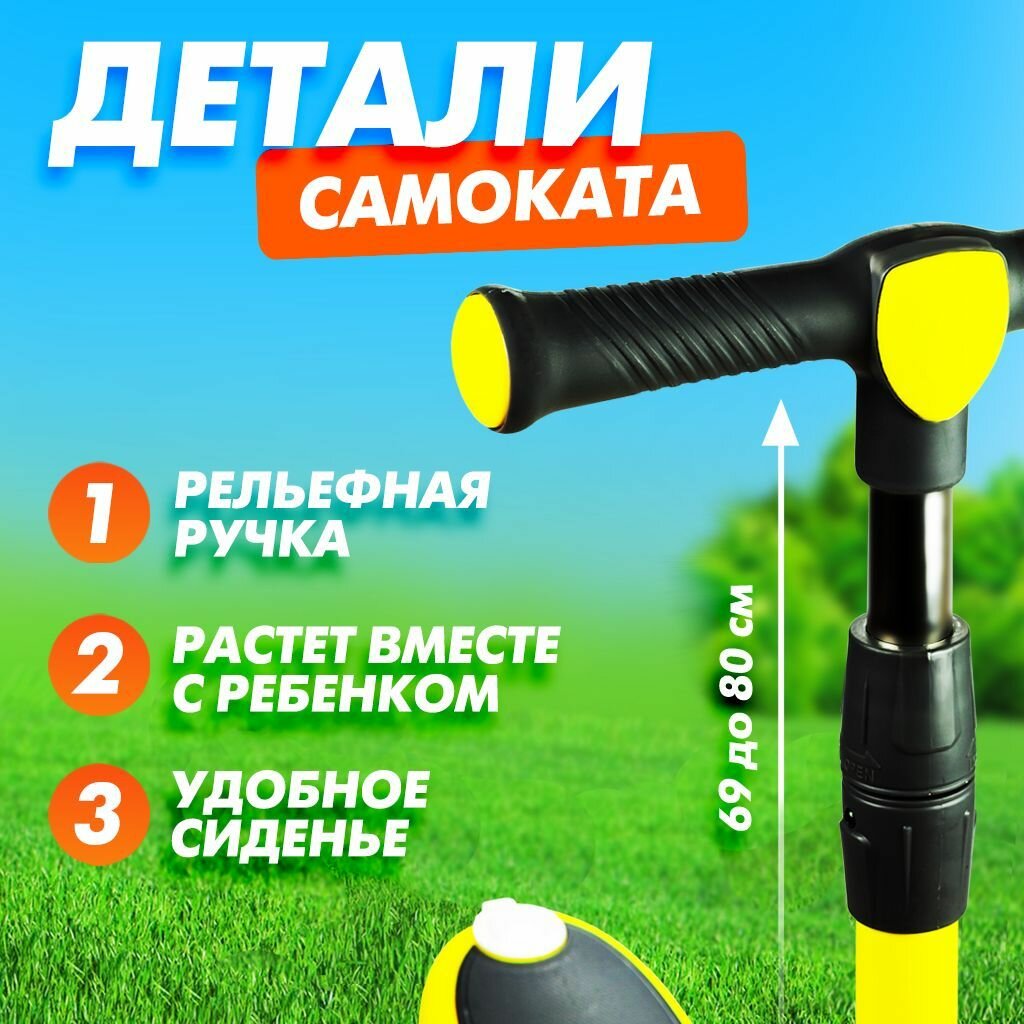 Детский трехколесный самокат кикборд 2 в 1, беговел городской, для девочек и мальчиков, сиденье выдерживает до 20кг, многофункциональный, с подсветкой и музыкой, желтый информация: