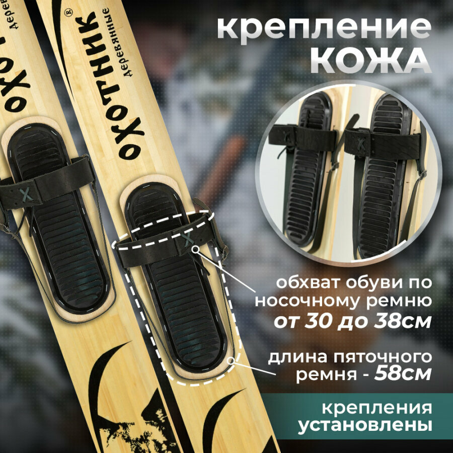 Лыжи охотничьи деревянные Маяк охотник 165 х 15 см с креплением кожа с пяткой информация: