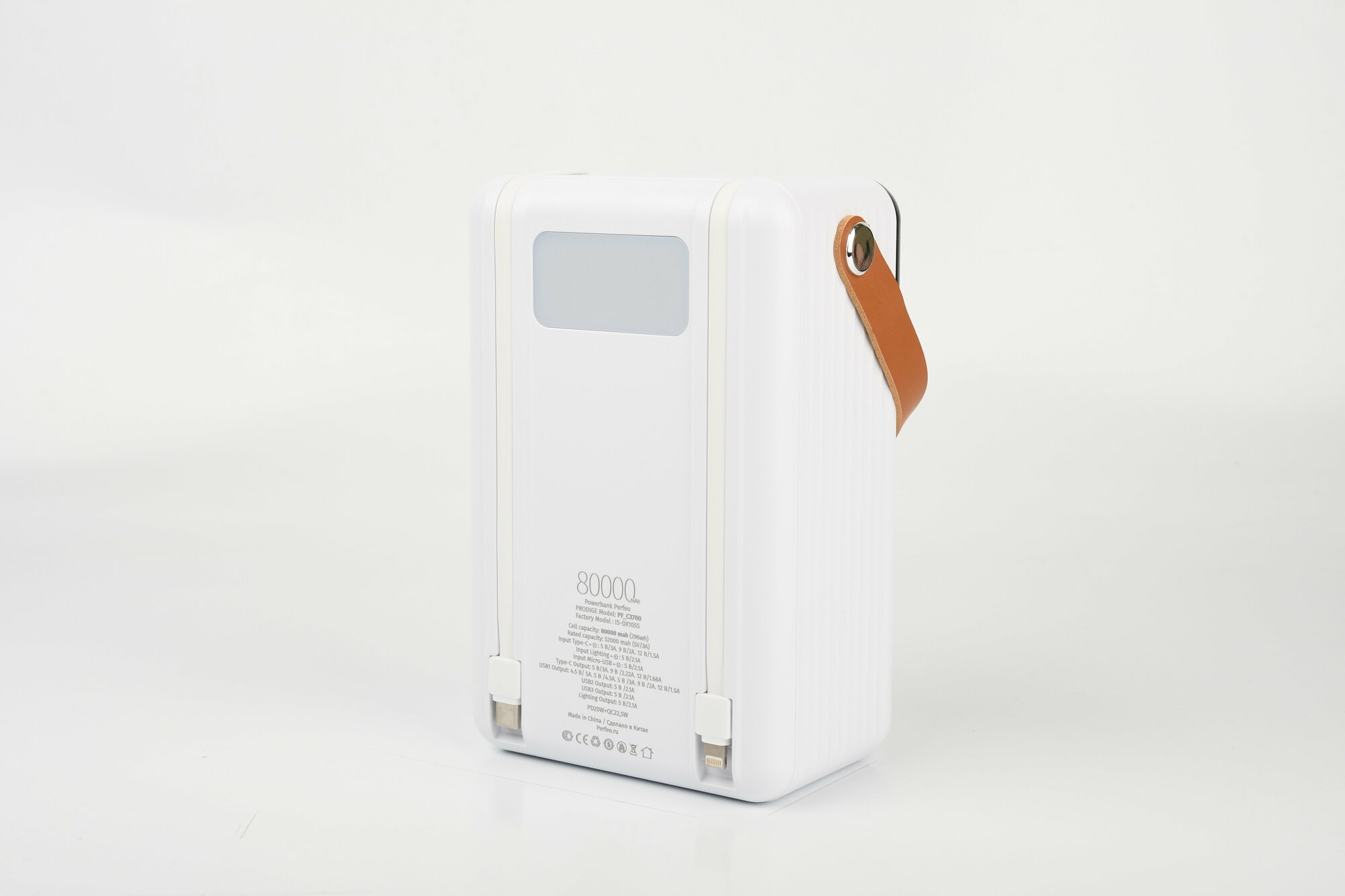 Отзывы на Perfeo Powerbank PRODIGE 80000 mAh/LED/PD + QC 3.0/Type-C/Lightning/3 USB/Выход: 5A, max 22.5W/White (PF_C3700)