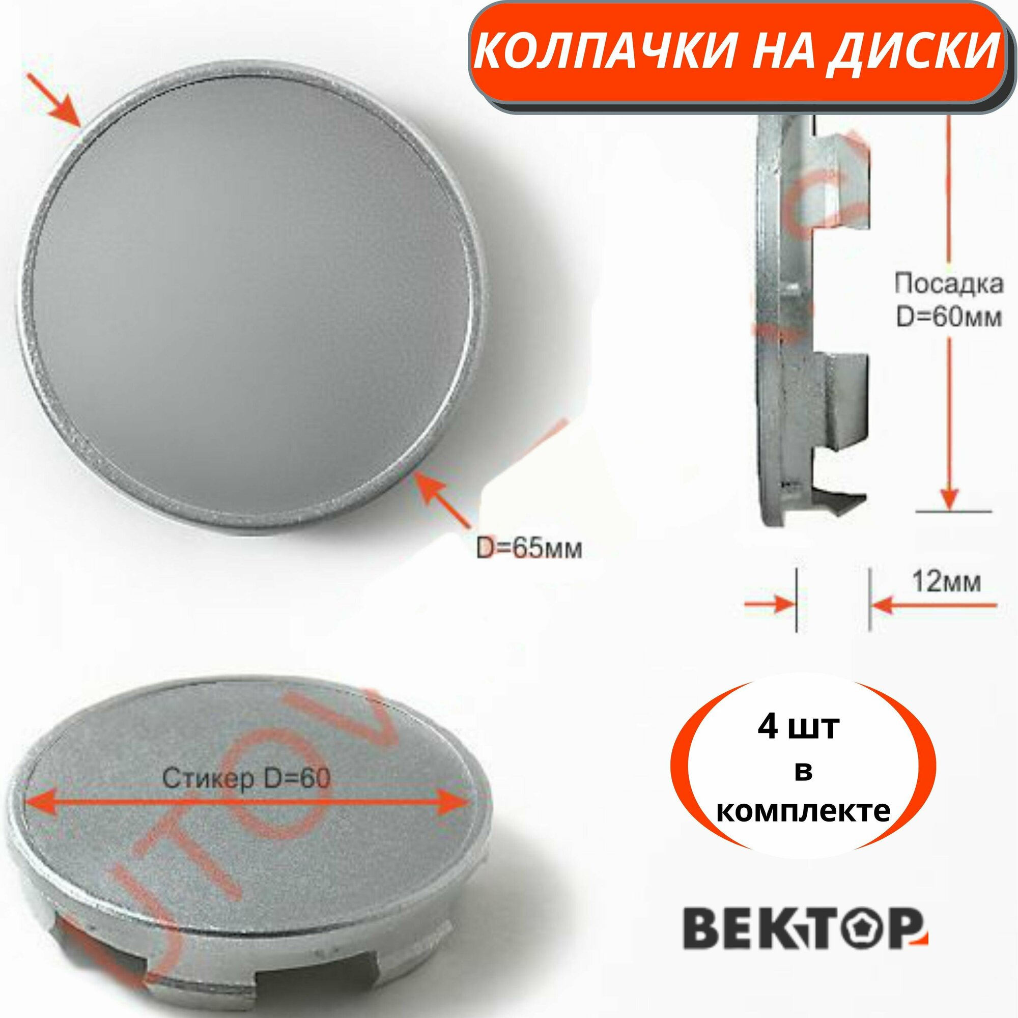 Колпачки на диски D60, 4 шт, покрыты грунтовкой серебристого цвета информация: