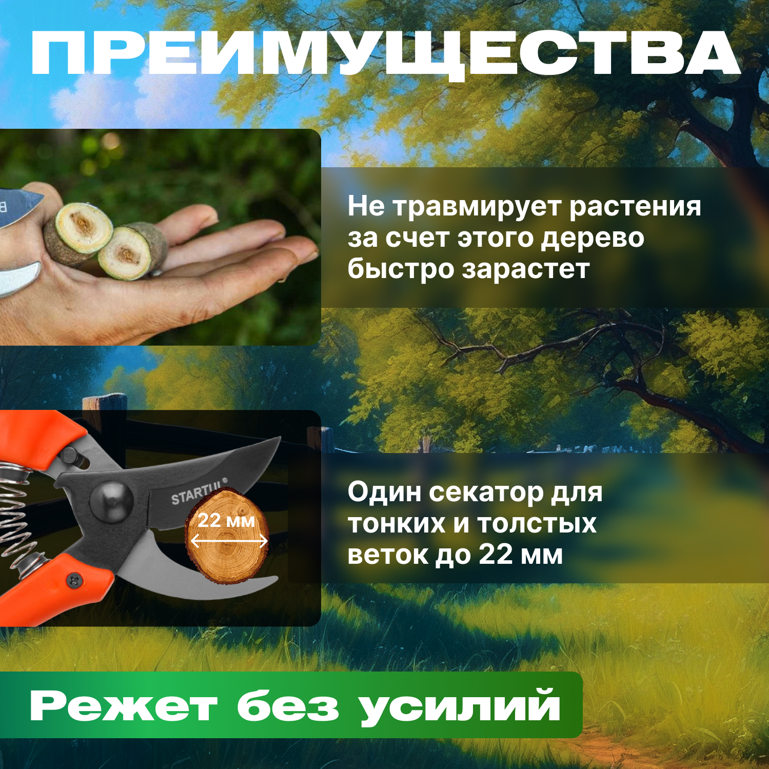- Ручные секаторы, высоторезы, сучкорезы