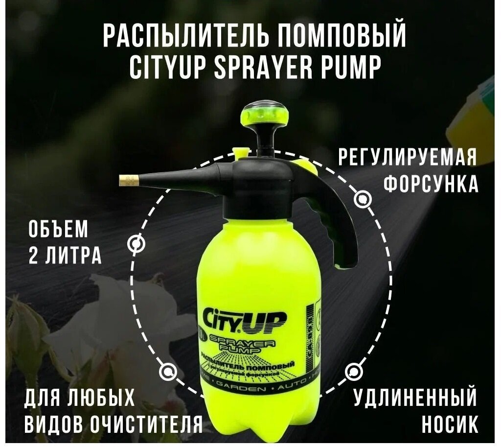 Опрыскиватель помповый, распылитель CityUP Sprayer Pump, 2 литра, удлиненный носик, регулируемая форсунка