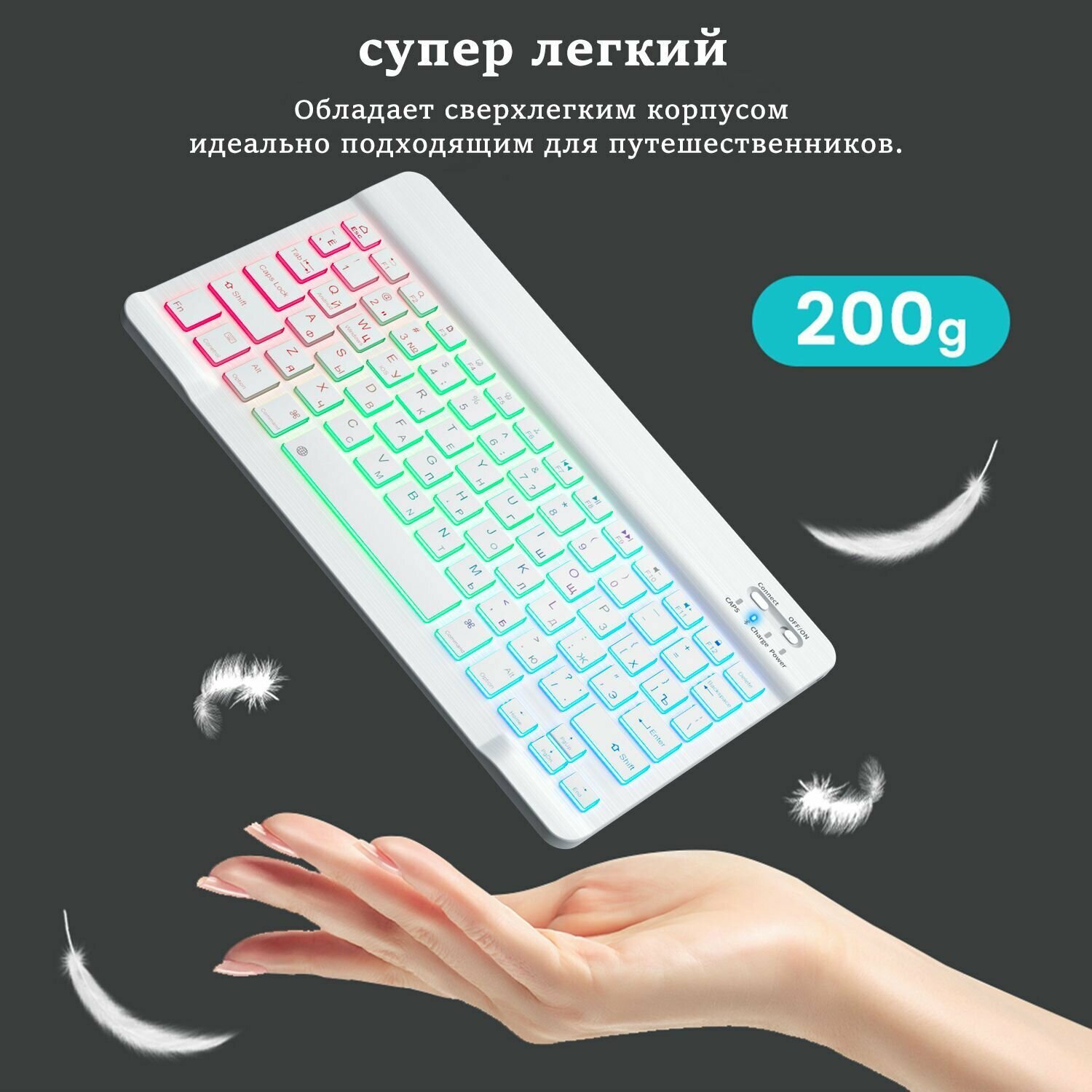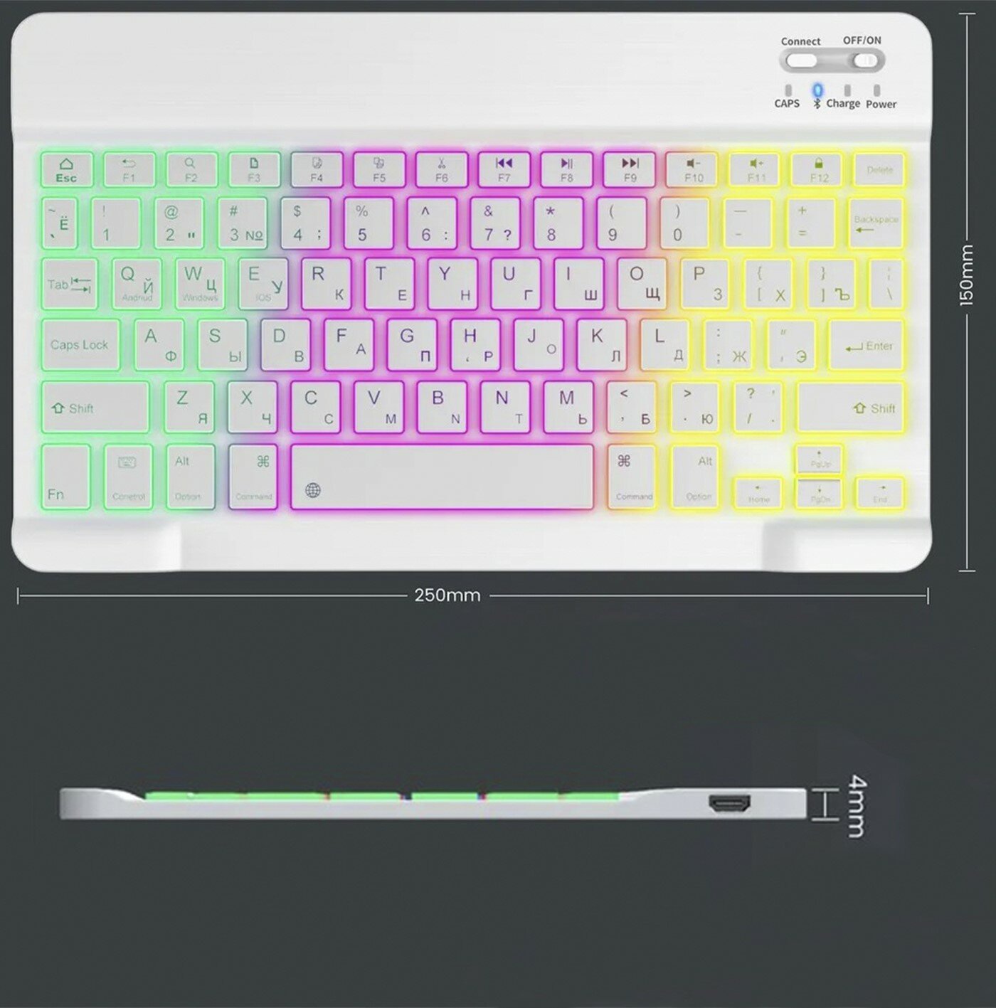 Беспроводная клавиатура с rgb подсветкой для телефона и планшета с bluetooth для Android/IOS/Windows белая информация: