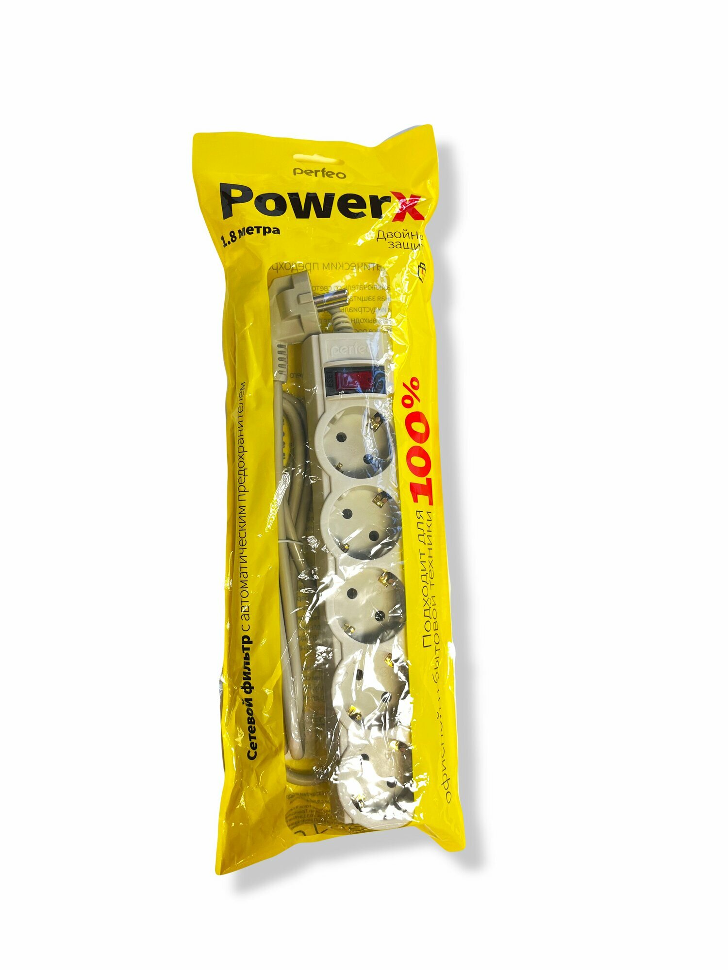 Удлинитель с автоматическим предохранителем PERFEO POWERX, 1,8 м, 5 розеток, серый информация: