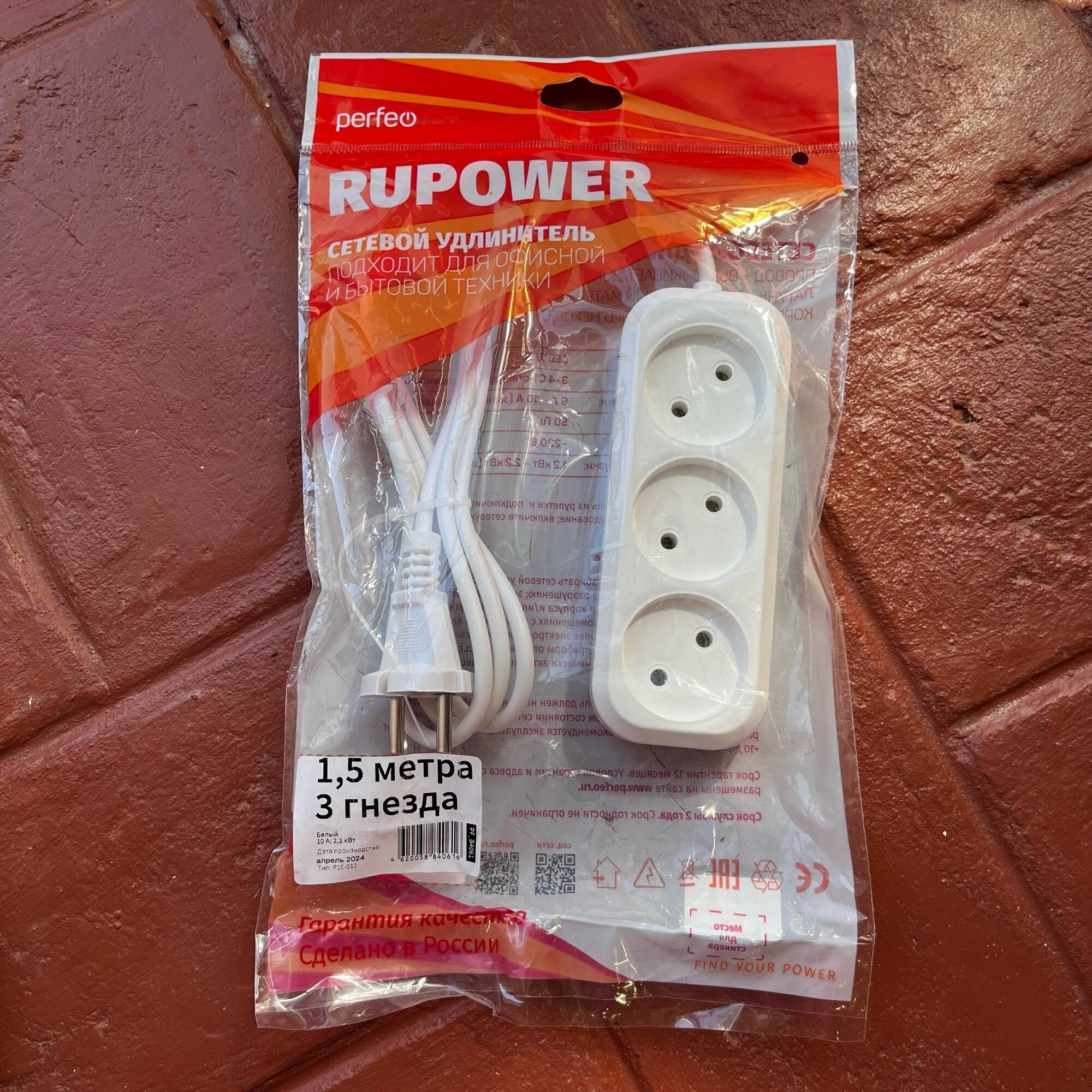Отзывы на Perfeo сетевой удлинитель без заземления "RU POWER", 1,5м, 3 розетки, белый (Р16-012)