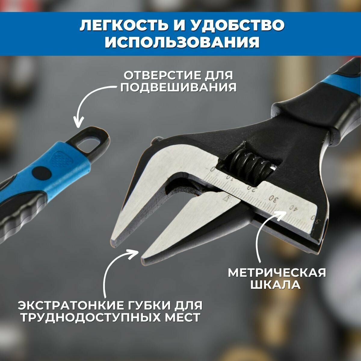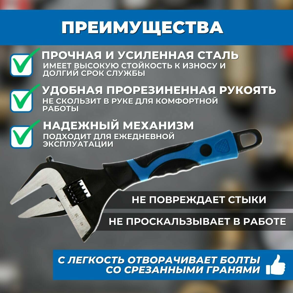 Отзывы на Ключ разводной сантехнический 8" профи (200x40мм, комбинированная ручка) с тонкими губками