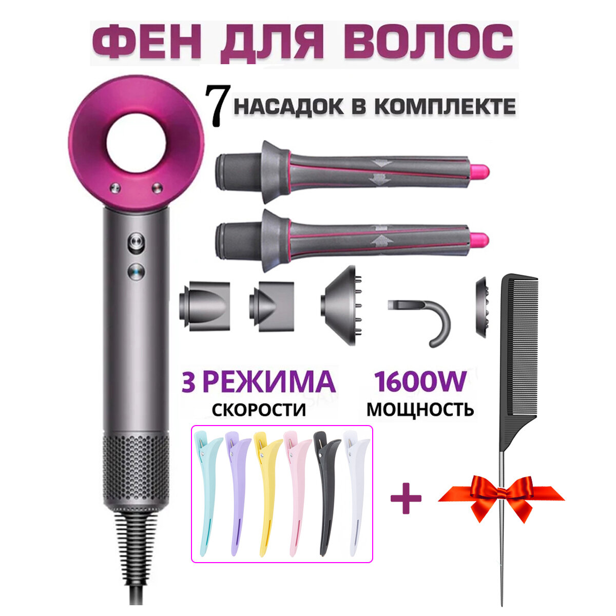 Фен для волос 9 в 1, профессиональный ионный фен beutyone, 1600 Вт, скоростей 3, фиолетовый 7 499 ₽