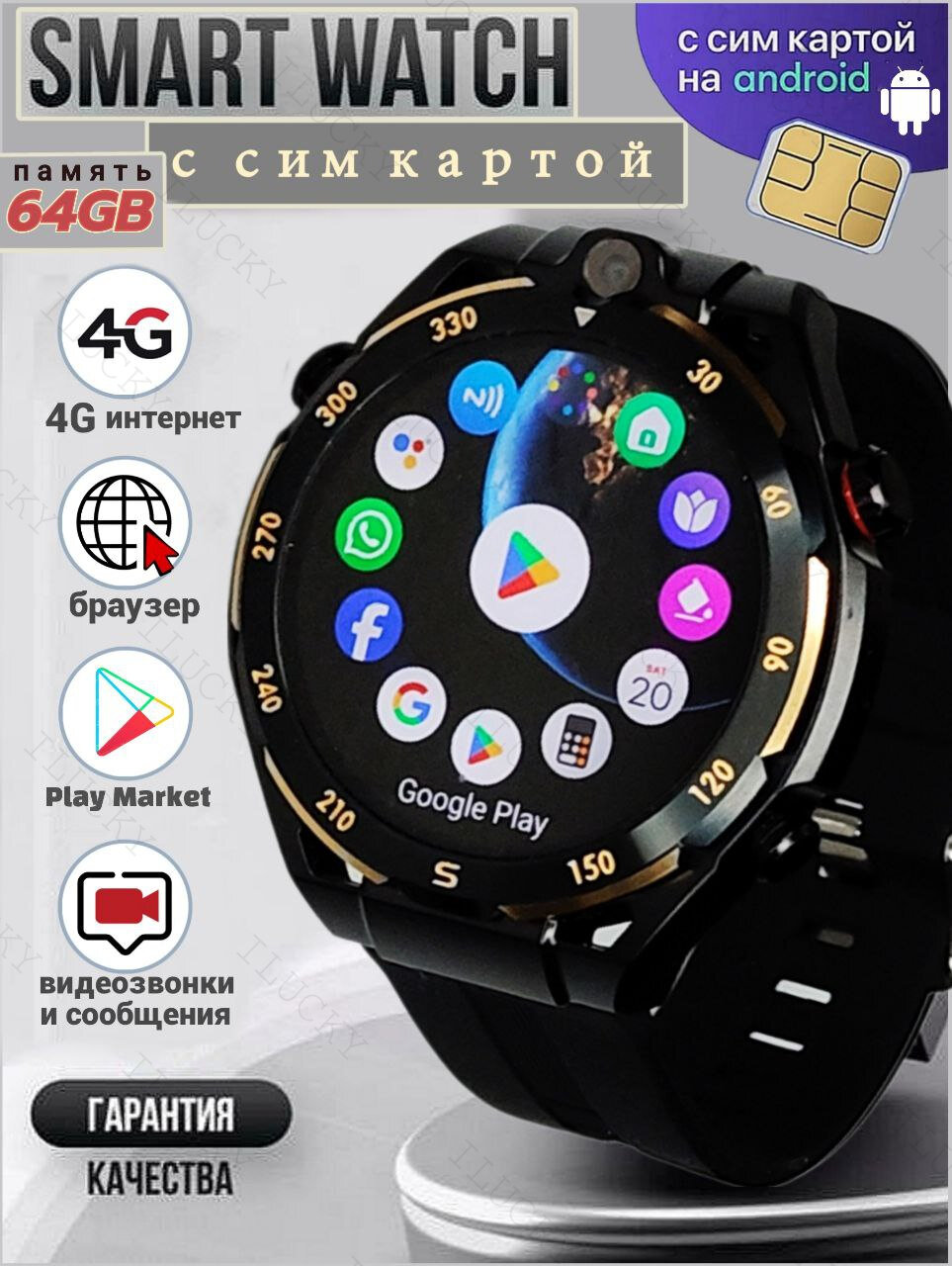 Умные мужские смарт часы G15 Pro 4G с Глонасс + GPS трекером и СИМ картой / видео и аудио звонки / Android часы / камера / Smart watch с sim-картой