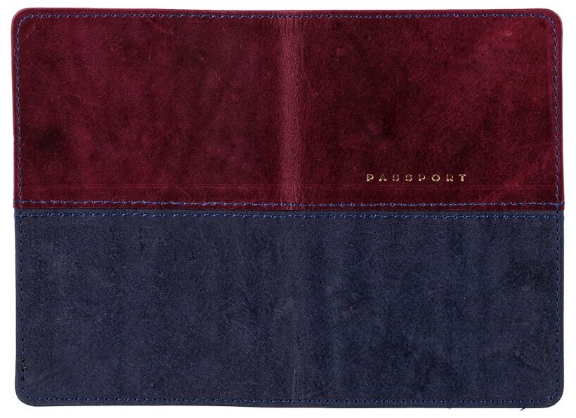 Обложка для паспорта OfficeSpace "Duo", кожа, бордо, синий, тиснение фольгой (311100)