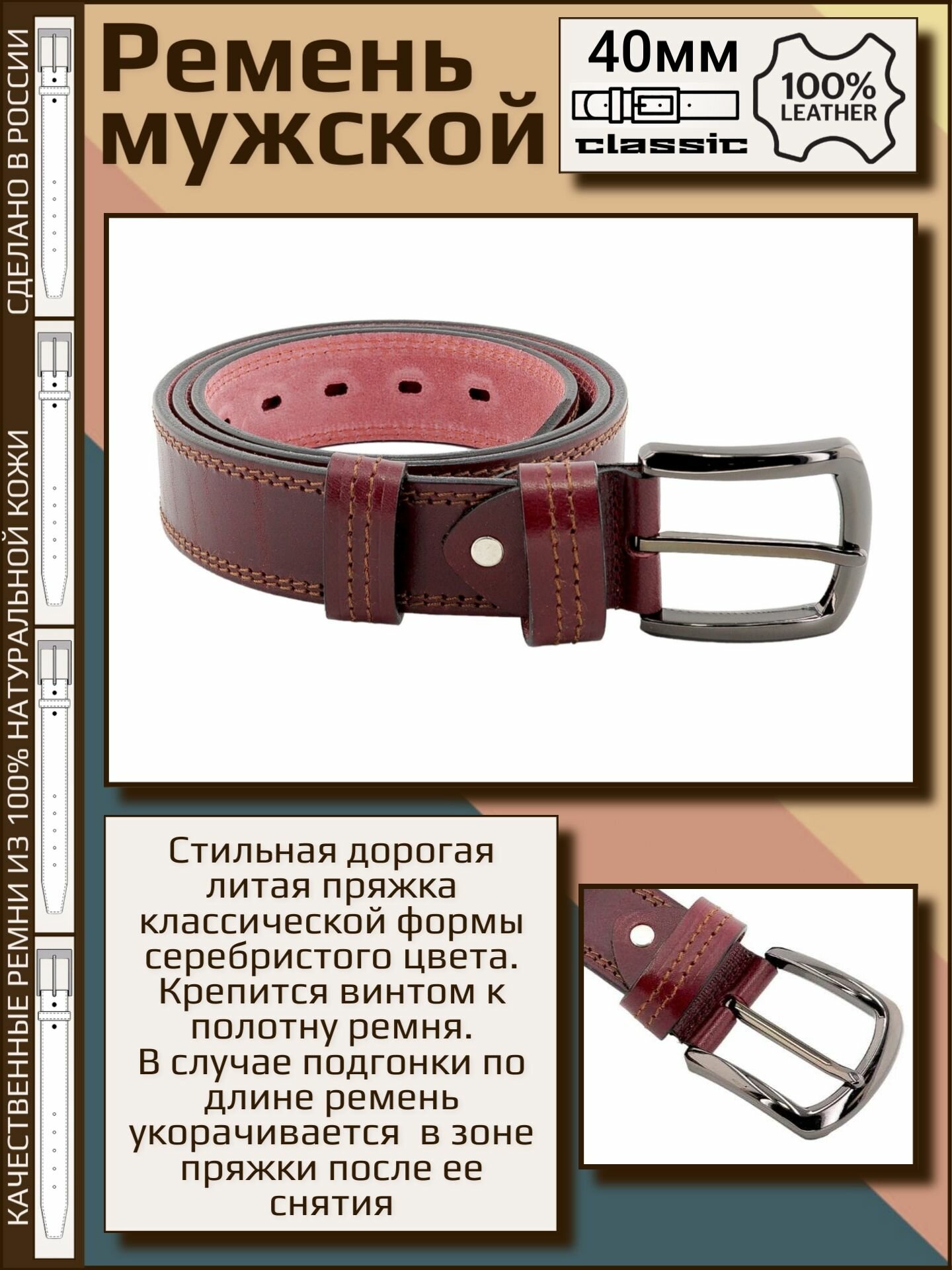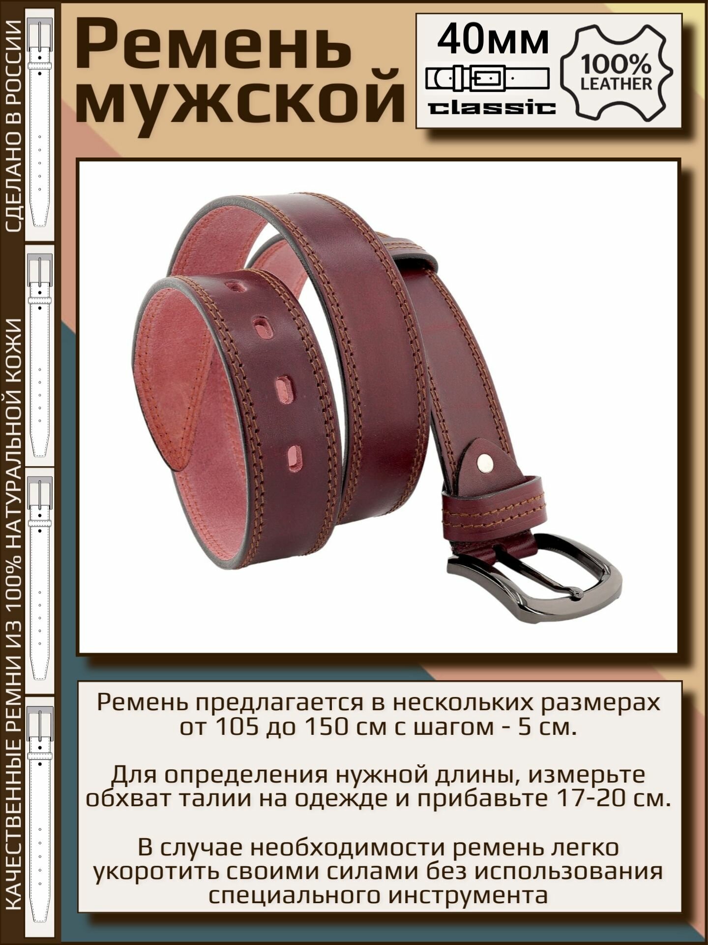 Отзывы на Ремень мужской кожаный Aksy Belt бордовый, 40мм, 2 строчка, Италия, 110 см