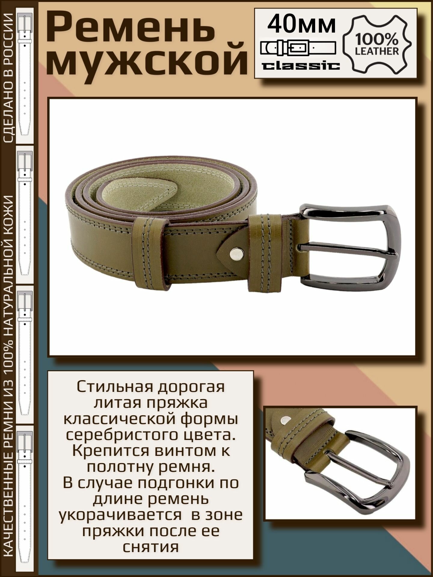 Отзывы на Ремень мужской кожаный Aksy Belt темный хаки, 40мм, 2 строчка, Италия, 135 см