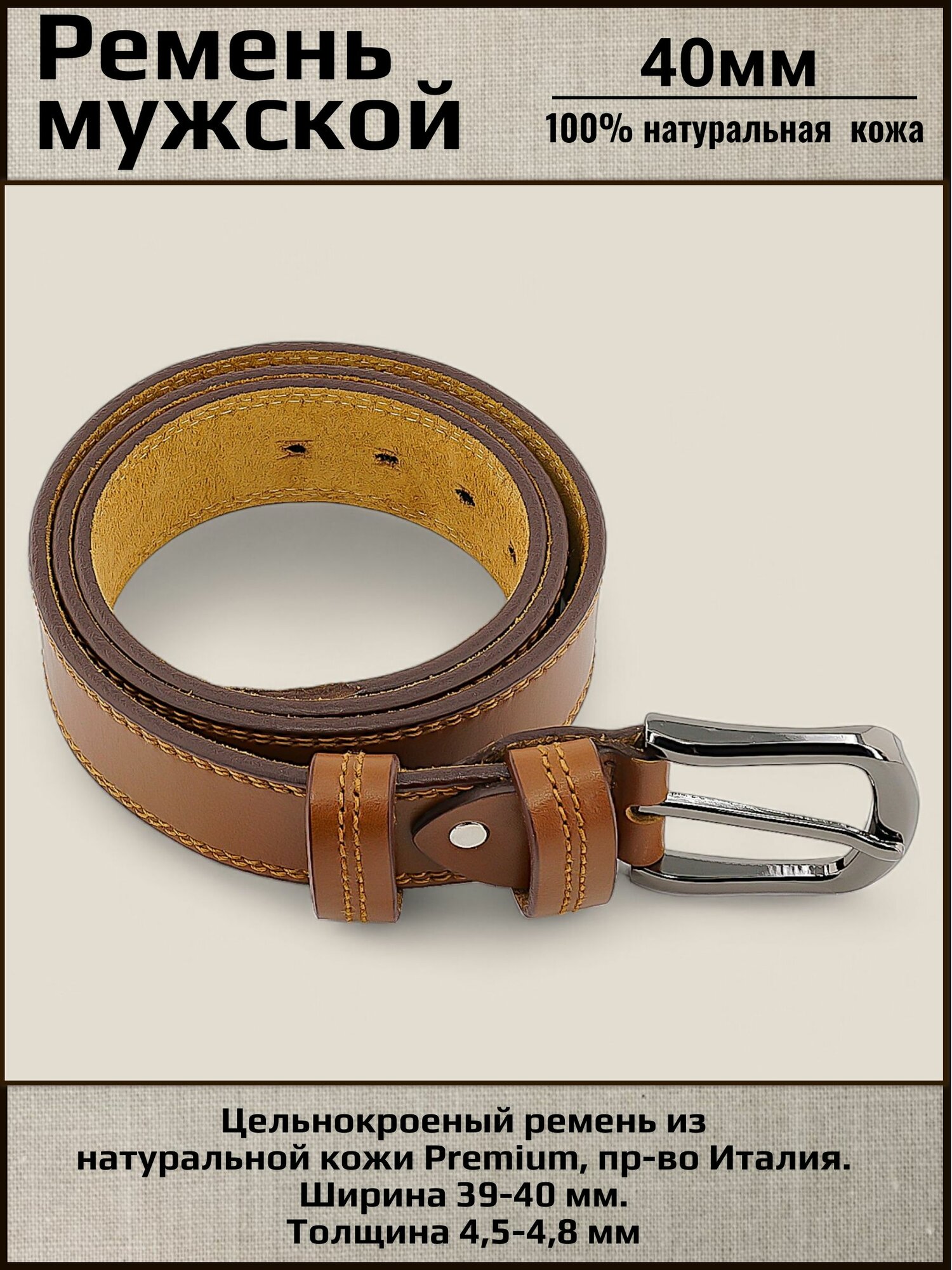 Ремень мужской кожаный AKSY BELT, коричневый, 40мм, прошитый, Италия, 125 см 1 869 ₽